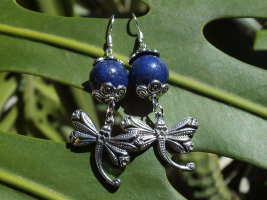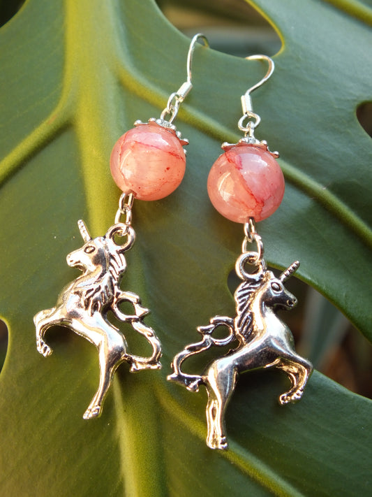 Pink Zebra Jasper Dragonfly Charm Earrings