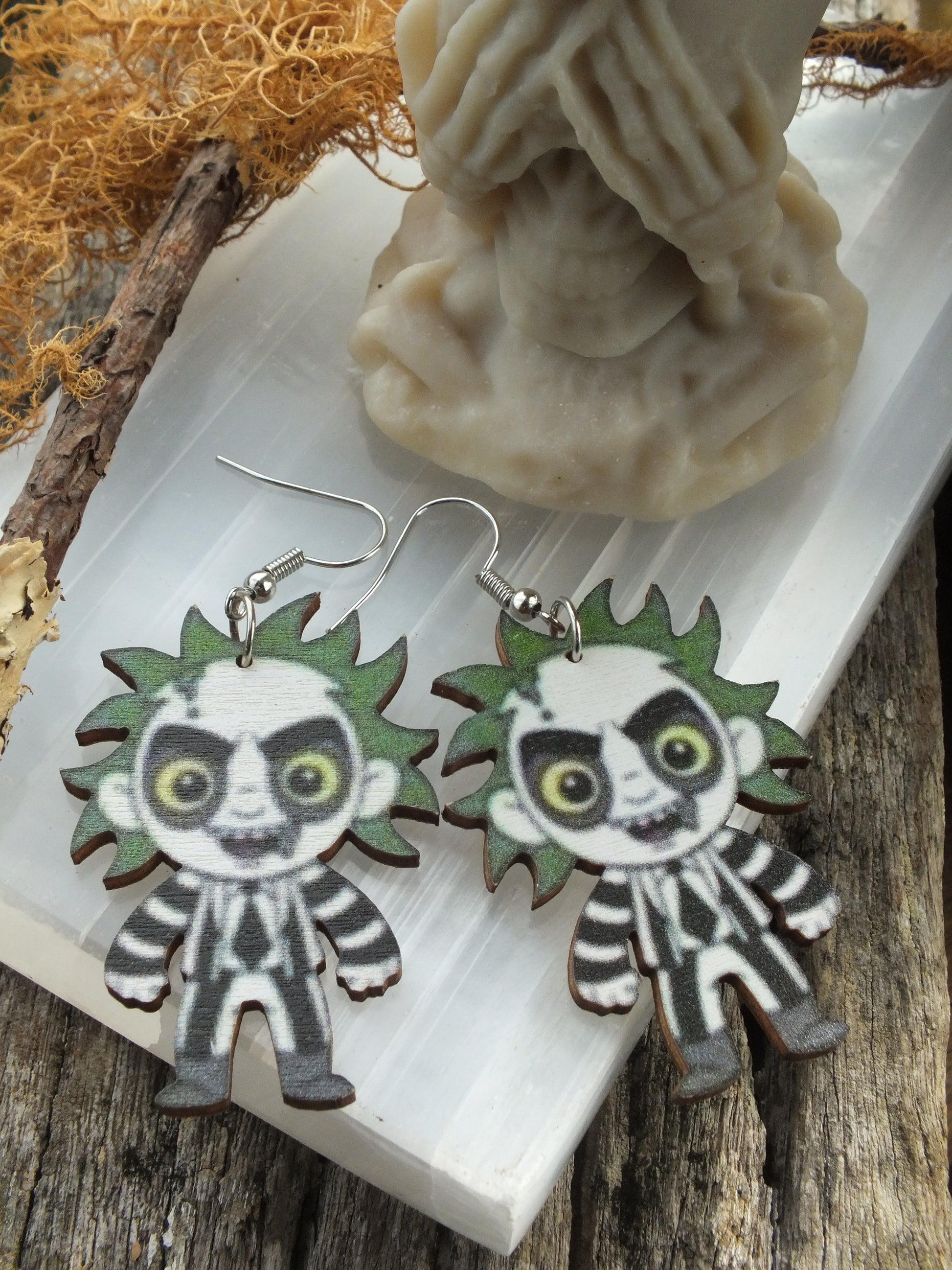 Inspired by the iconic 1988 film character, these Beetlejuice Wooden Earrings offer a refined way to embrace Halloween spirit. Crafted with attention to detail, they provide a unique accessory that allows you to express individuality with subtle elegance. Perfect for those who appreciate distinctive style rooted in classic cinema.