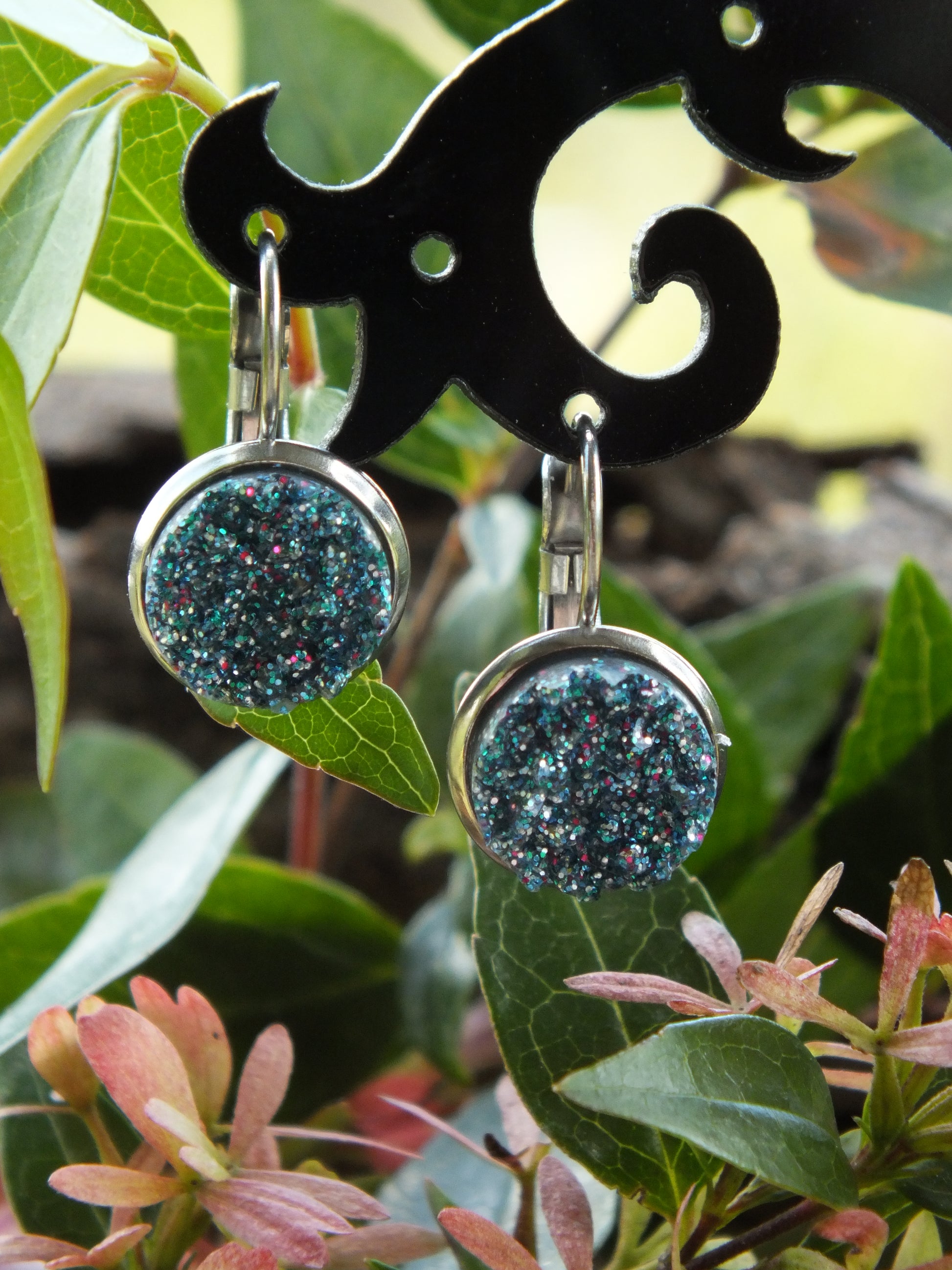French/Lever Back Druzy Crystal Cluster Look Earrings