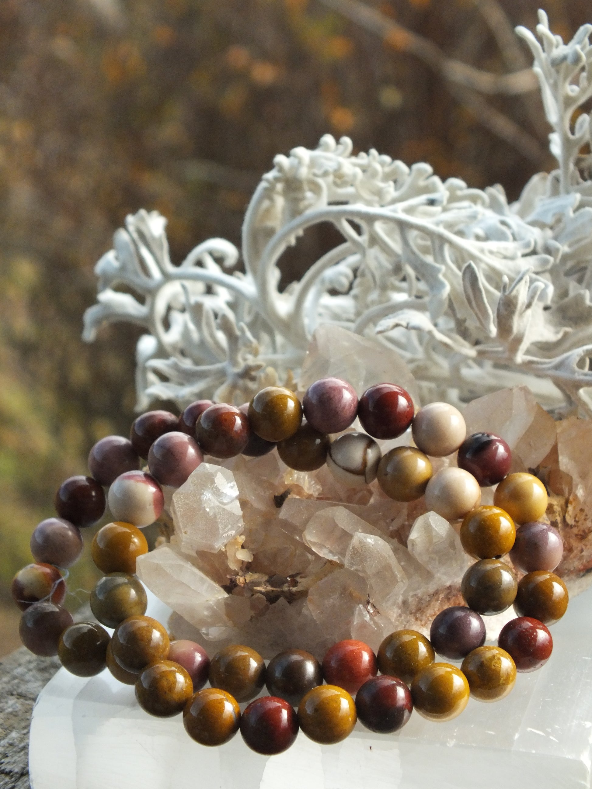 Discover the energy of Mookaite with this bracelet, crafted from the rich red earth of Australia. This stone is known for promoting physical vitality, supporting emotional healing, and fostering spiritual growth. It is also believed to enhance intuition and deepen your connection with nature. Wear this bracelet to awaken your spirit, inspire courage, and embrace a renewed sense of purpose.