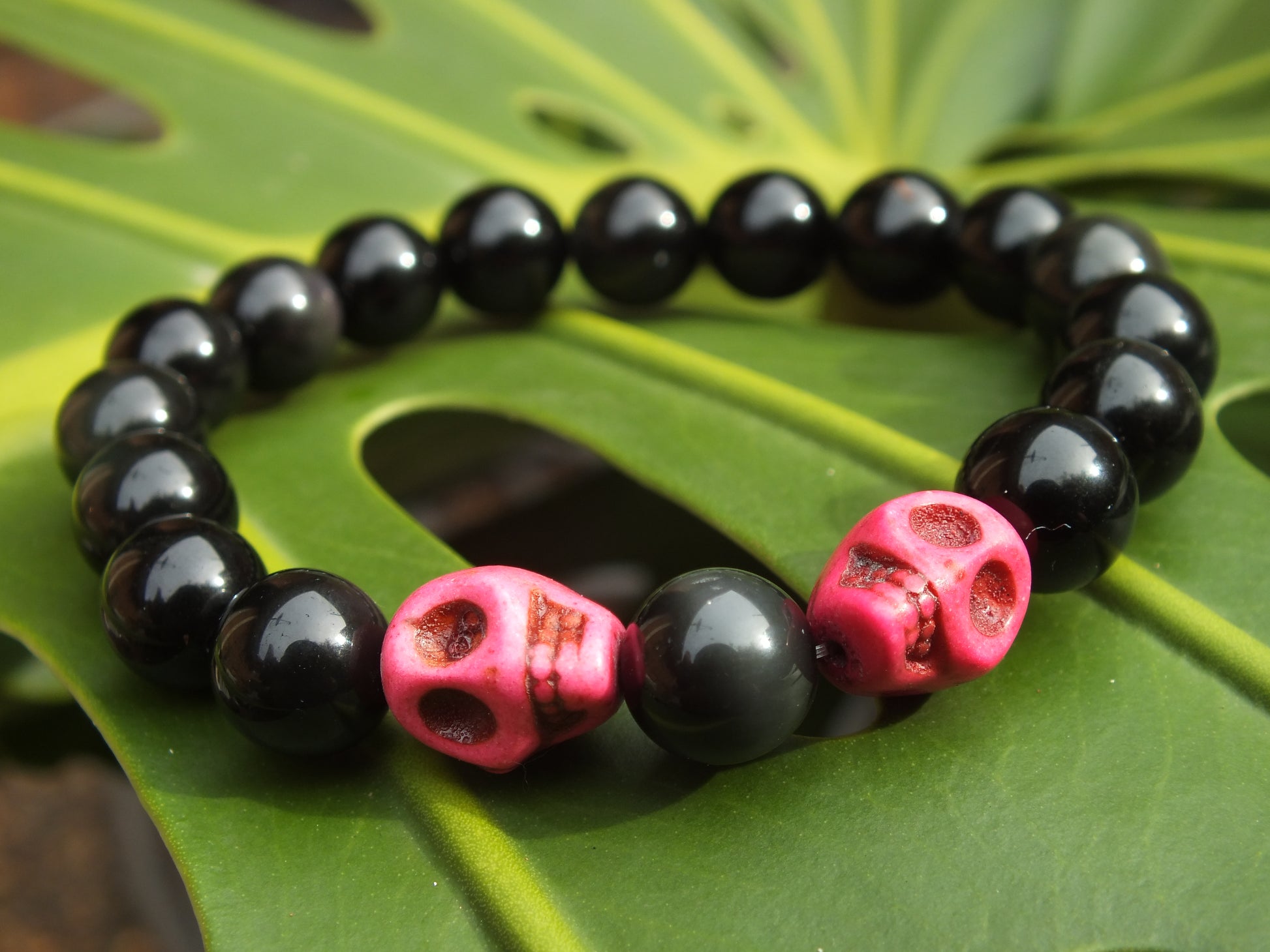 Obsidian for Purification, Grounding & Transformation paired with dyed pink Howlite for Rest, Mindfulness & Patience.