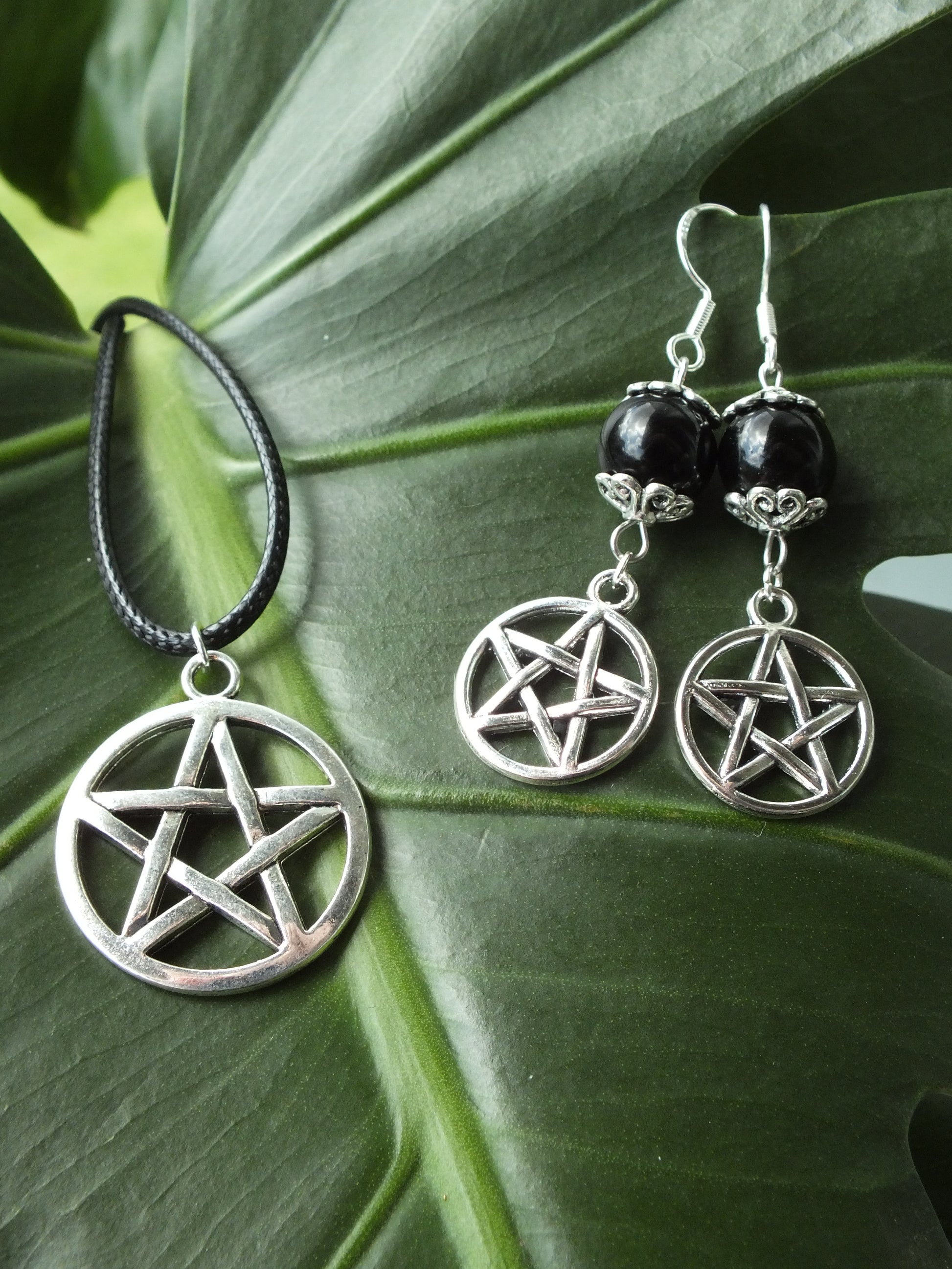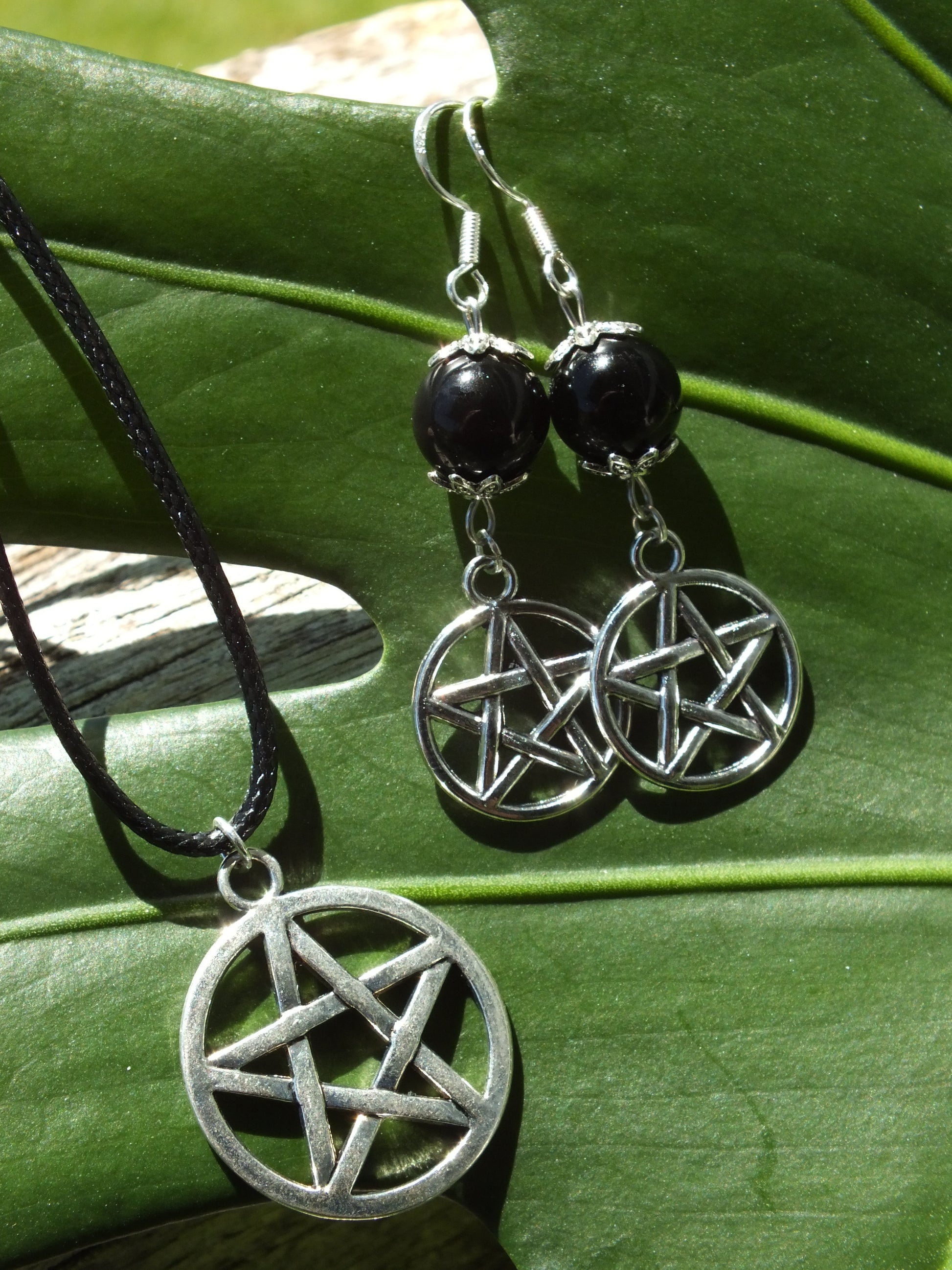 Obsidian Pentacle Earrings & Necklace Set