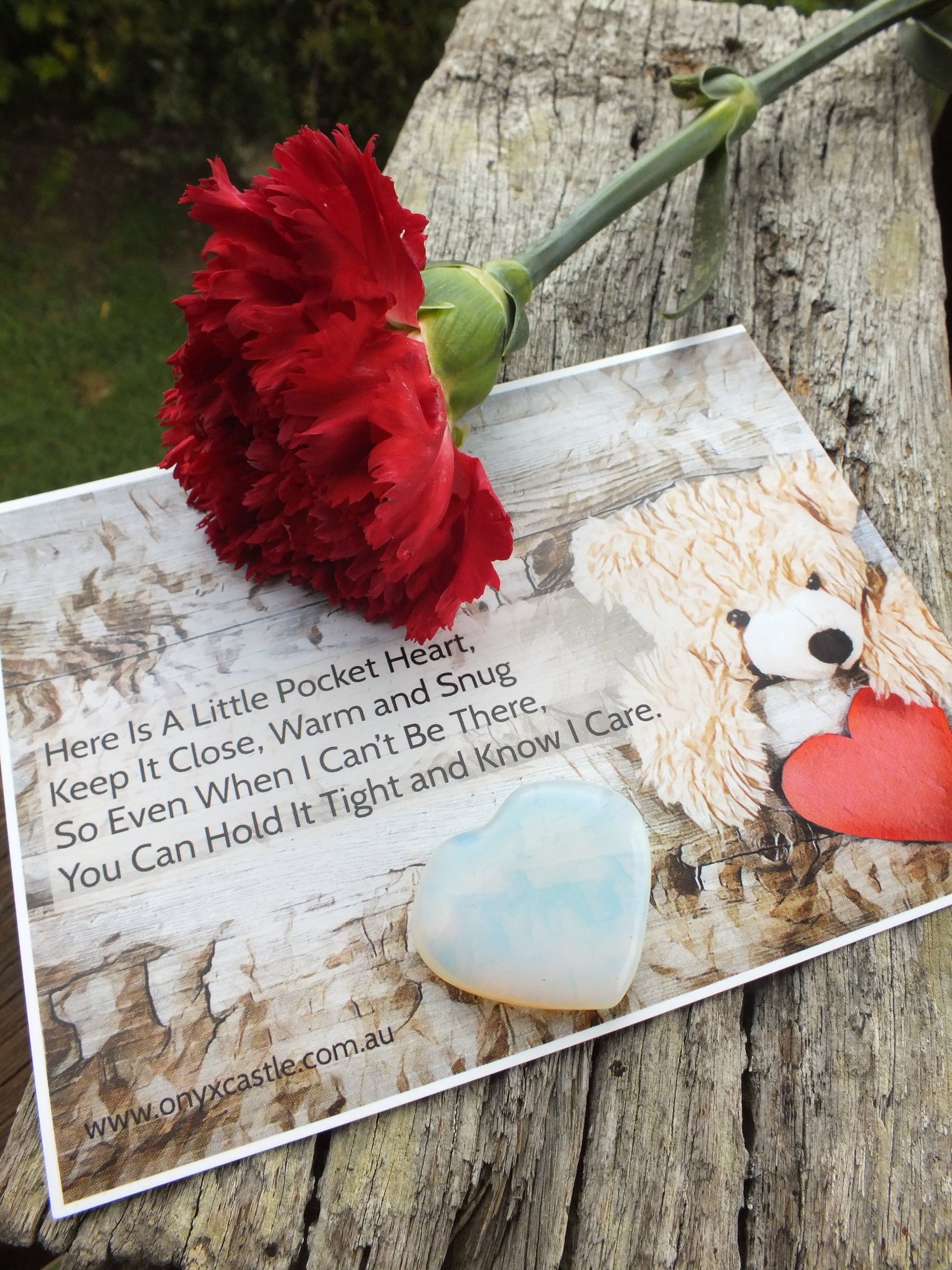 Each Crystal Pocket Heart Comes With A Card As Pictured (Back Is Black For You To Write Your Own Message) and a Organza Bag For Safe Keeping.