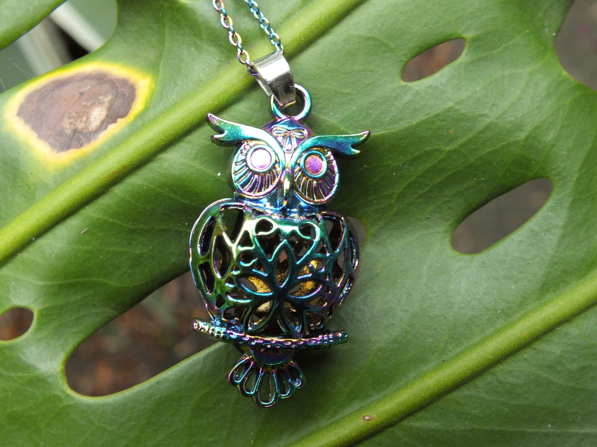 Rainbow Owl Locket Necklace
