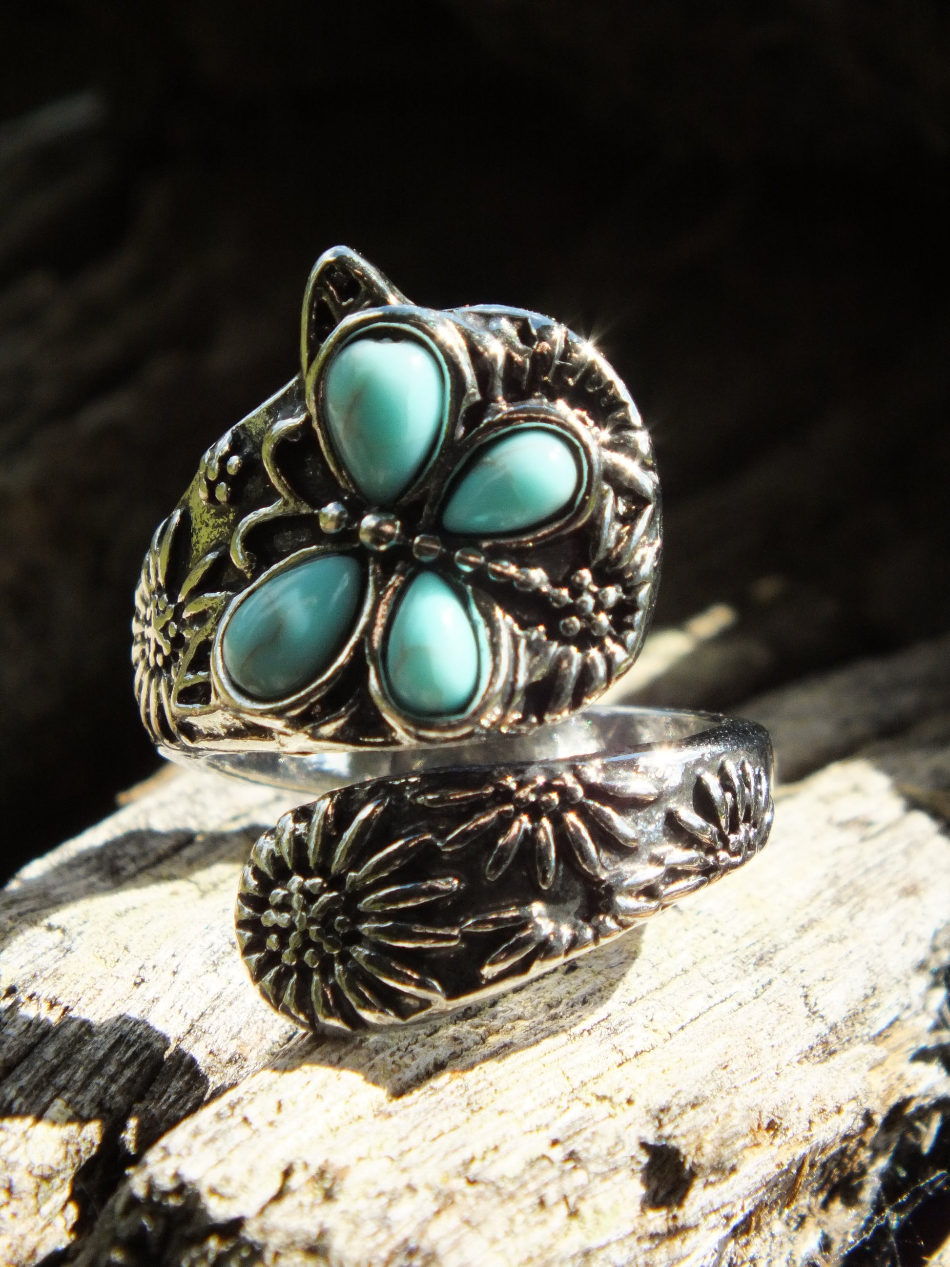 This butterfly spoon ring is a perfect combination of boho, western, country, and vintage styles. Made with synthetic turquoise and alloy metal, it features an adjustable size for added convenience. Add a touch of elegance and charm to any outfit with this unique and versatile piece of jewellery.